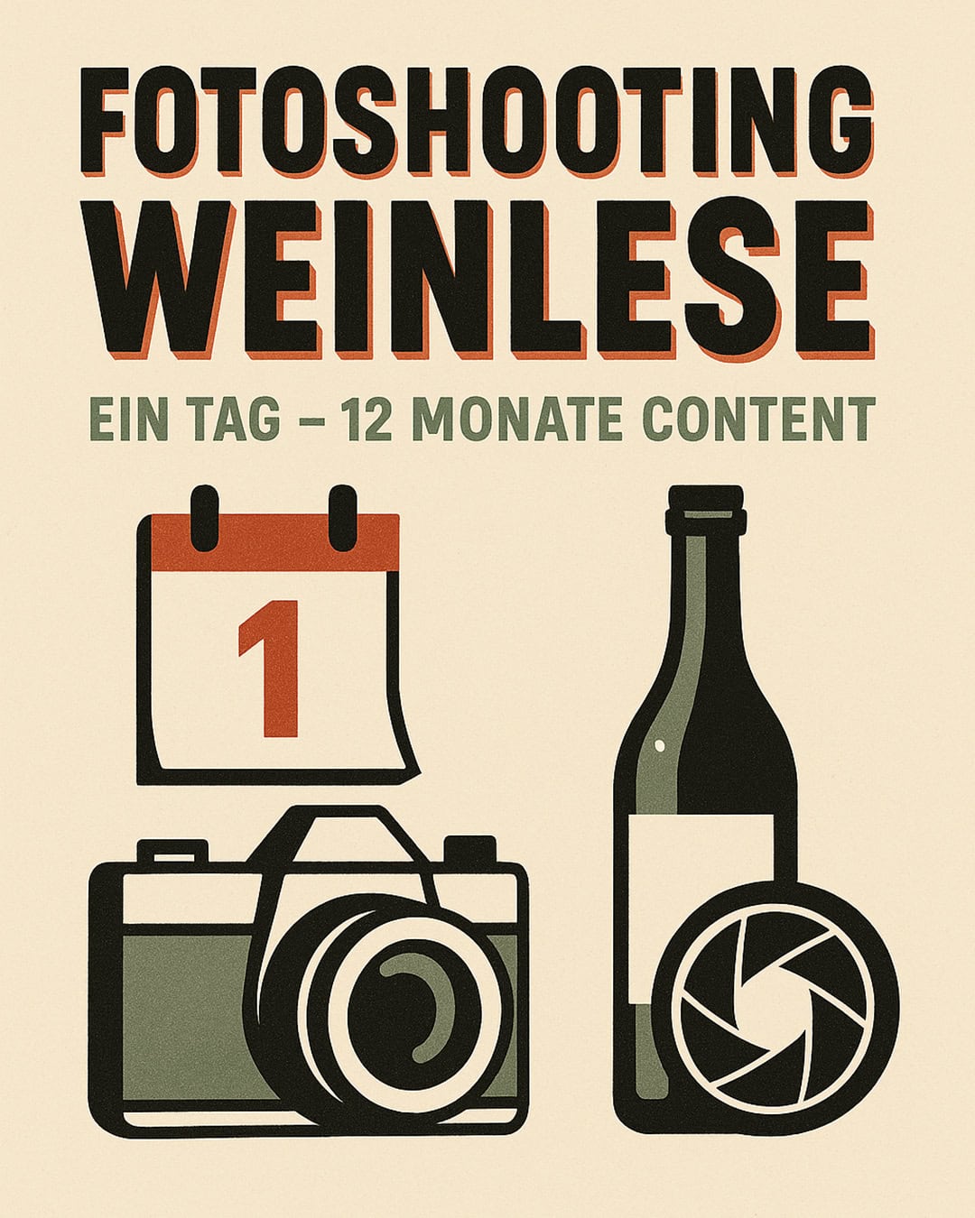 Die Weinlese ist der wichtigste Moment des Jahres im Weingut. Ein professionelles Fotoshooting Weinlese Weingut hält Emotionen, Handwerk und Teamgeist fest – und liefert Content für 12 Monate Marketing.