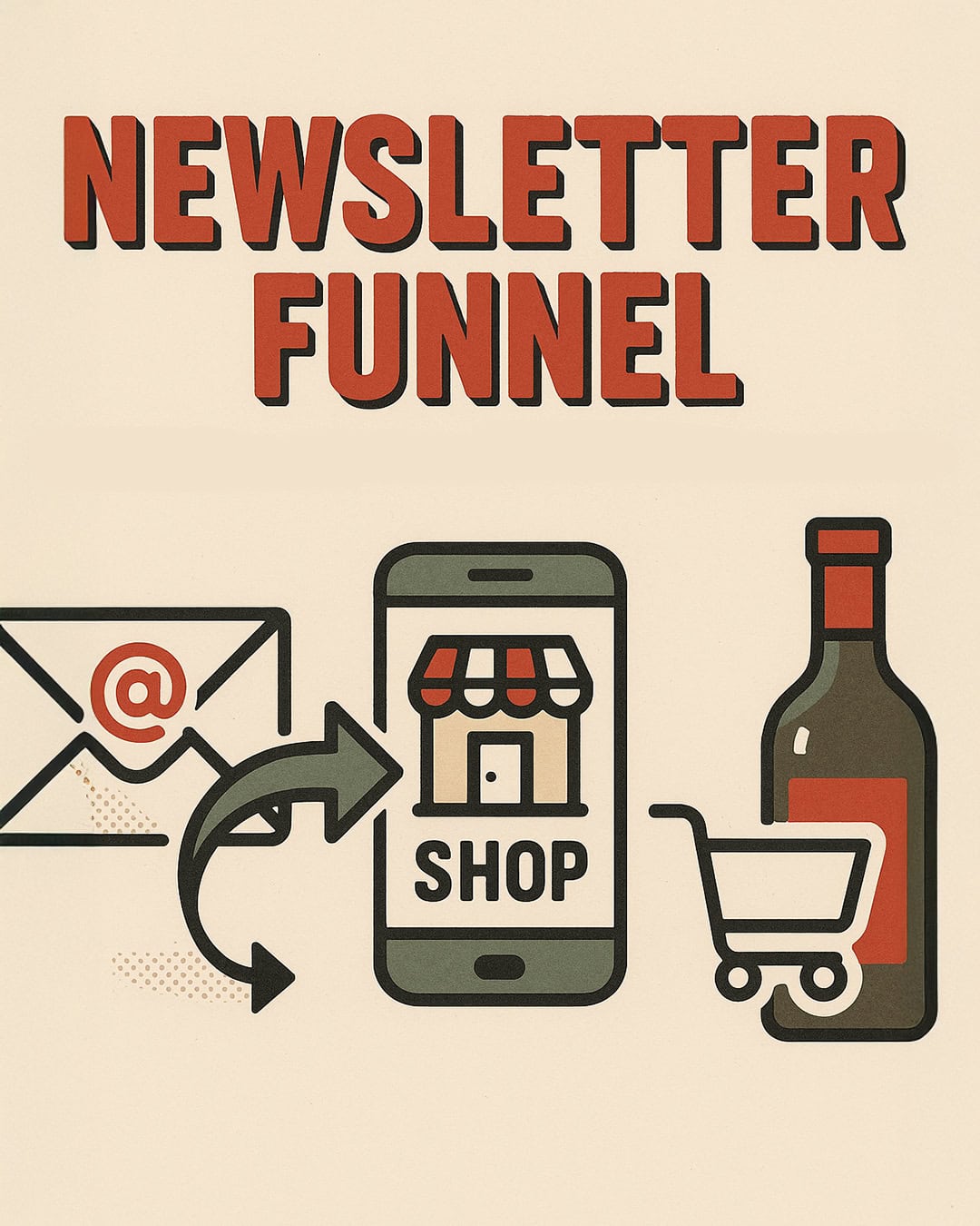 Newsletter Funnel Weingut: 5-Stufen-Plan vom Erstkontakt bis zur Nachbestellung. Setup, Vorlagen, Segmentierung & KPIs – einfach erklärt für Winzer:innen.