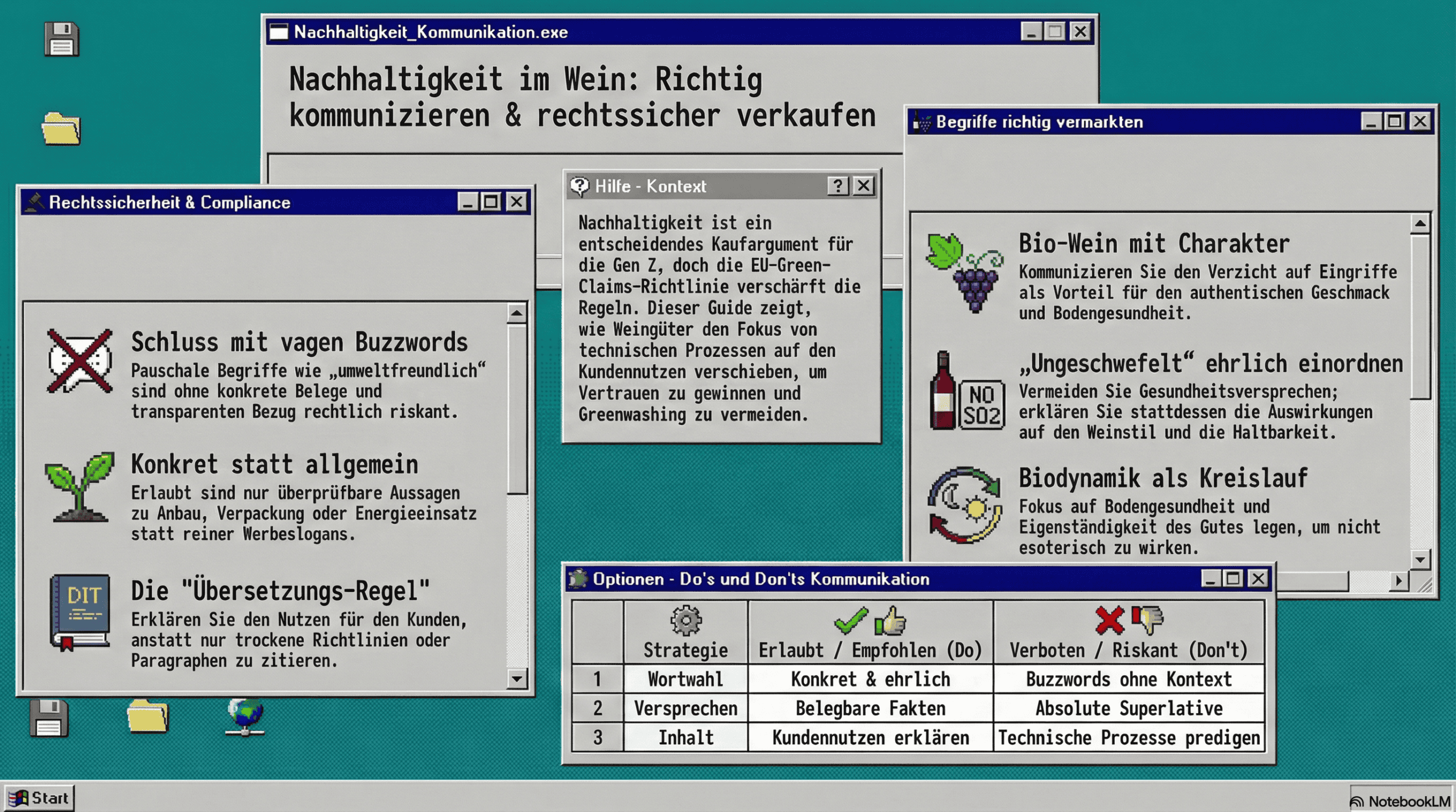 Diese transparente Nachhaltigkeitskommunikation Wein schafft Vertrauen und vermeidet falsche Erwartungen.